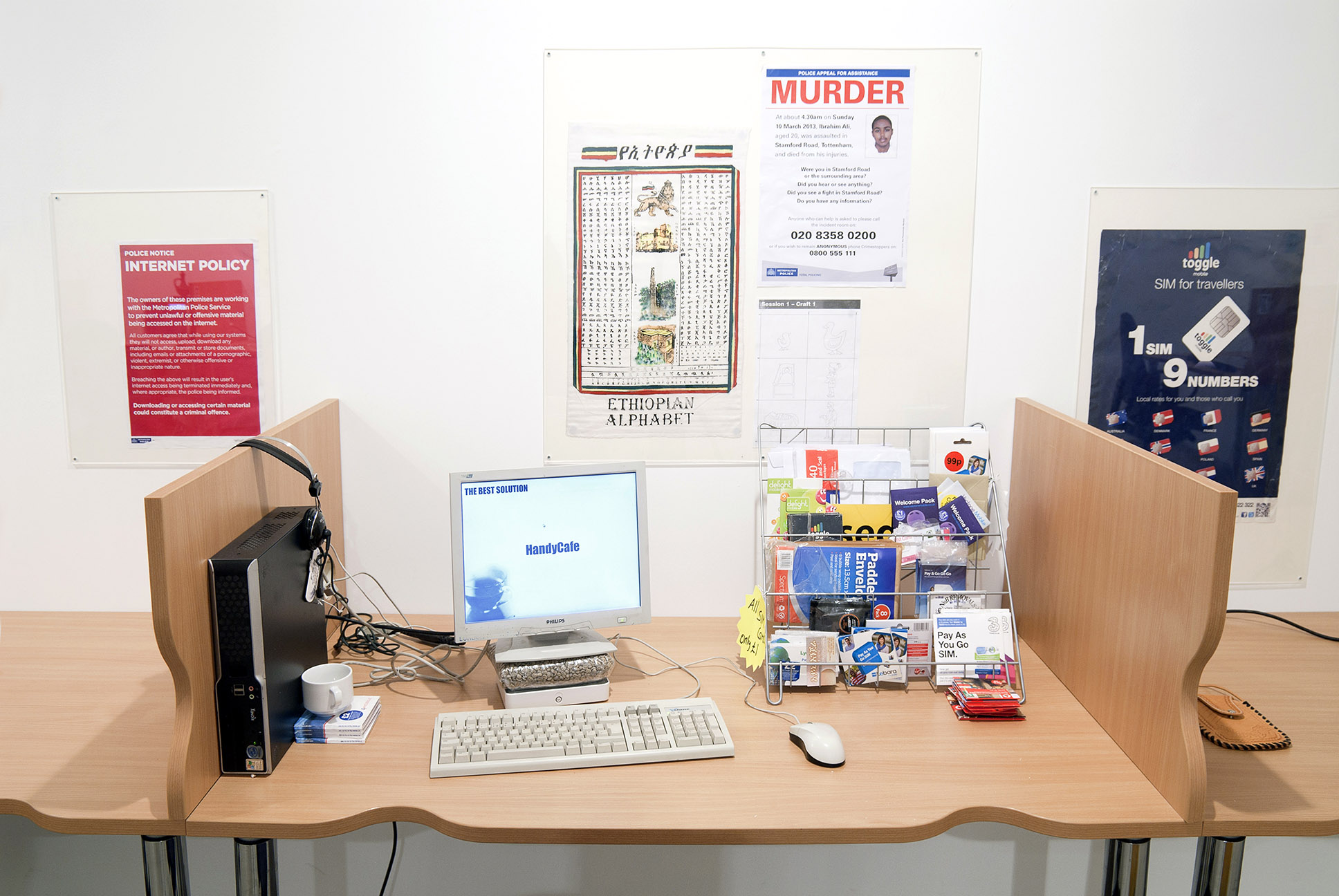 Up until its closure in June 2013, Internet Centre & Habesha Grocery in London had been a busy 'corner-shop' and Internet Café, which offered basic computing services and foreign goods. It was frequented by a diverse group of customers mostly from the local neighbourhood seeking assistance with copying, scanning, gaming, international calls, CV compiling, translation, IT skills, electronic repairs or money transfers.